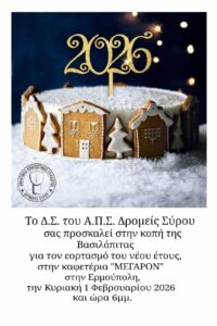 NEWS ΛΙΣΤΑ ΣΥΜΜΕΤΟΧΗΣ ΣΤΗ ΓΕΝΙΚΗ ΣΥΝΕΛΕΥΣΗ ΤΗΣ 1ΗΣ ΦΕΒΡΟΥΑΡΙΟΥ 2026 Κοπή βασιλόπιτας 01/02/2026 - 18:00 - Cafe "ΜΕΓΑΡΟΝ" Γενική Συνέλευση 01/02/2026 - 18:00 - Cafe "ΜΕΓΑΡΟΝ" Μεταγωνιστικό δελτίο τύπου Syros Trail Challenge 2025 Τα αποτελέσματα των εκλογών των Δρομέων Σύρου ΔΗΜΟΣΙΕΥΣΗ ΚΑΤΑΛΟΓΩΝ ΜΕΛΩΝ Α.Π.Σ. ΔΡΟΜΕΙΣ ΣΥΡΟΥ ΜΕ ΔΙΚΑΙΩΜΑ ΨΗΦΟΥ ΣΤΙΣ ΕΚΛΟΓΕΣ ΤΗΣ 25ης ΜΑΐΟΥ 2025 ΕΚΛΟΓΕΣ Α.Π.Σ. ΔΡΟΜΕΙΣ ΣΥΡΟΥ 2025 Finikas Run 2025: Φωτογραφικά άλμπουμ Στο Πανελλήνιο Πρωτάθλημα Ανωμάλου δρόμου Κ16 οι Δρομείς Σύρου Πρωτιές για τους δρομείς Σύρου στους αγώνες της Μυκόνου Α.Π.Σ. Δρομείς Σύρου - Κοπή πίτας με βραβεύσεις ΛΙΣΤΑ ΣΥΜΜΕΤΟΧΗΣ ΣΤΗ ΓΕΝΙΚΗ ΣΥΝΕΛΕΥΣΗ ΤΗΣ 26ΗΣ ΙΑΝΟΥΑΡΙΟΥ 2025 Γενική Συνέλευση 26/01/2025 - 17:00 - Cafe "ΜΕΓΑΡΟΝ" Κοπή βασιλόπιτας 26/01/2025 - 18:00 - Cafe "ΜΕΓΑΡΟΝ" Δρόμος Υγείας Επισκοπείου 2024: Το φωτογραφικό άλμπουμ του αγώνα Με επιτυχία και ρεκόρ συμμετοχών το φετινό Syros Trail Challenge 2024 Syros Run 2024: Επτακόσιοι δρομείς κάθε ηλικίας έτρεξαν στη γιορτή του αθλητισμού Το Finikas Run 2024 σε 341 καρέ Έκοψαν την πίτα τους οι Δρομείς Σύρου για το 2024 Πέντε τμήματα της ακαδημίας των Δρομέων Σύρου έκοψαν την πίτα τους Τακτική Γενική συνέλευση για τους Δρομείς Σύρου Επιτυχίες στους Αιγαιοπελαγίτικους αγώνες για τους Δρομείς Σύρου Μανιώτης και Χάνου στην κορυφή του Syros Trail Challenge 2023 Με απόλυτη επιτυχία πραγματοποιήθηκε το 6ο Syros Run !!! Φωτοάλμπουμ από το Finikas Run 2023 Σε οικογενειακό κλίμα η Χοροεσπερίδα των Δρομέων Σύρου Την πρωτοχρονιάτικη πίτα του έκοψε ο Σύλλογος Δρομέων Σύρου